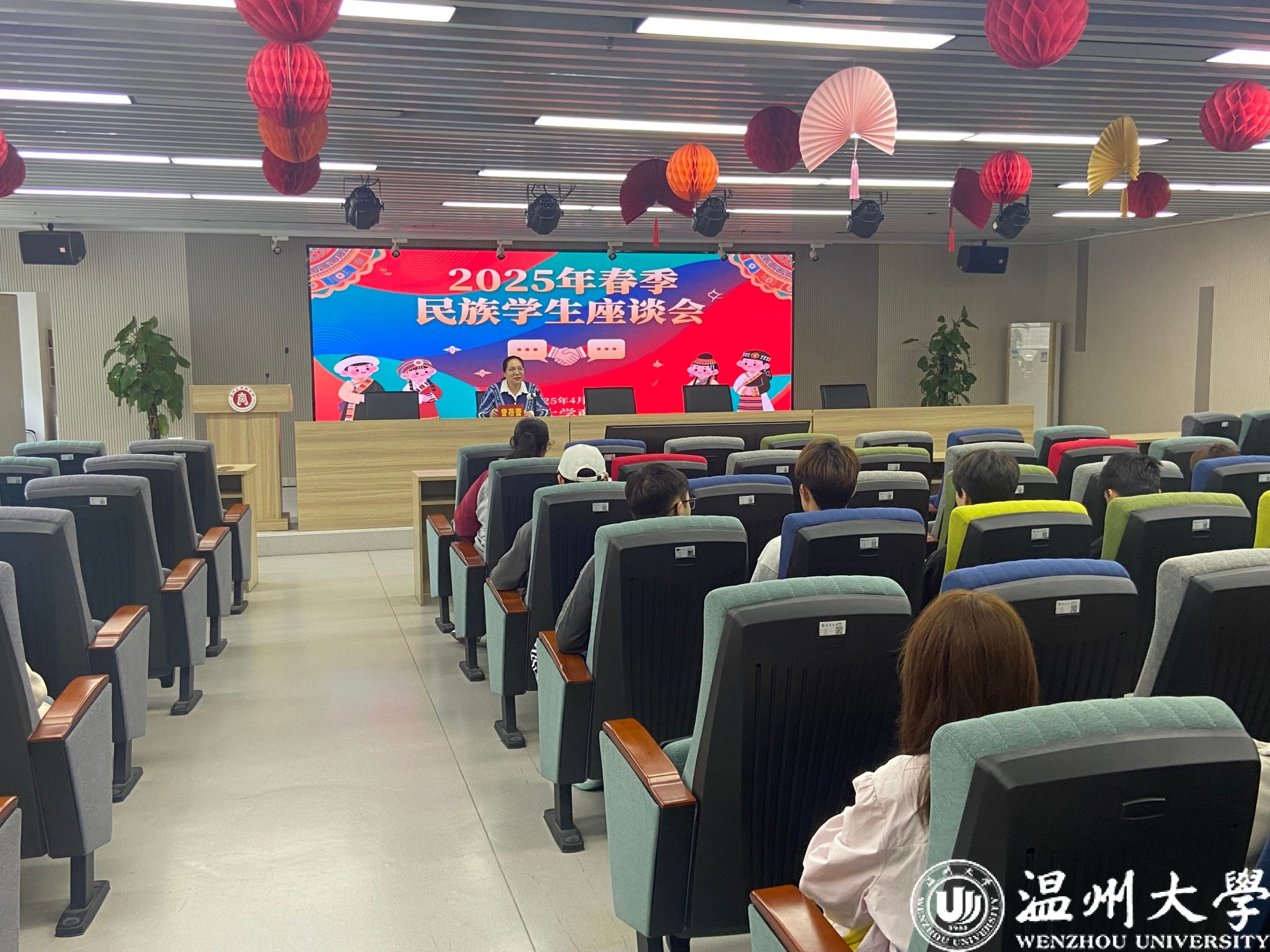 曾蓓蕾副书记在会上强调,民族政策是国家发展的重要基石,学校始终将民族平等、团结和共同繁荣作为基本遵循。她指出,学校通过学业、生活等多方面的关怀措施,为少数民族学生提供全方位支持,助力各族学子融入校园生活。她呼吁同学们珍惜民族团结的大好局面,尊重民族文化传统,共同维护中华民族共同体意识。