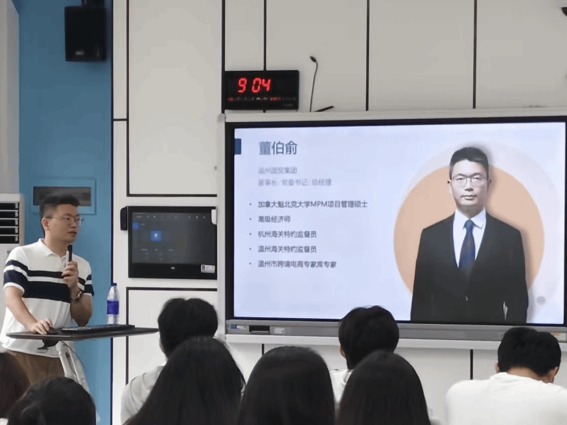 为深入推进校企合作,同时让学生了解国贸专业以后的就业前景和国际大环境对国贸经贸领域的影响,6月18日,温州国贸集团董伯俞总经理莅临魔镜号