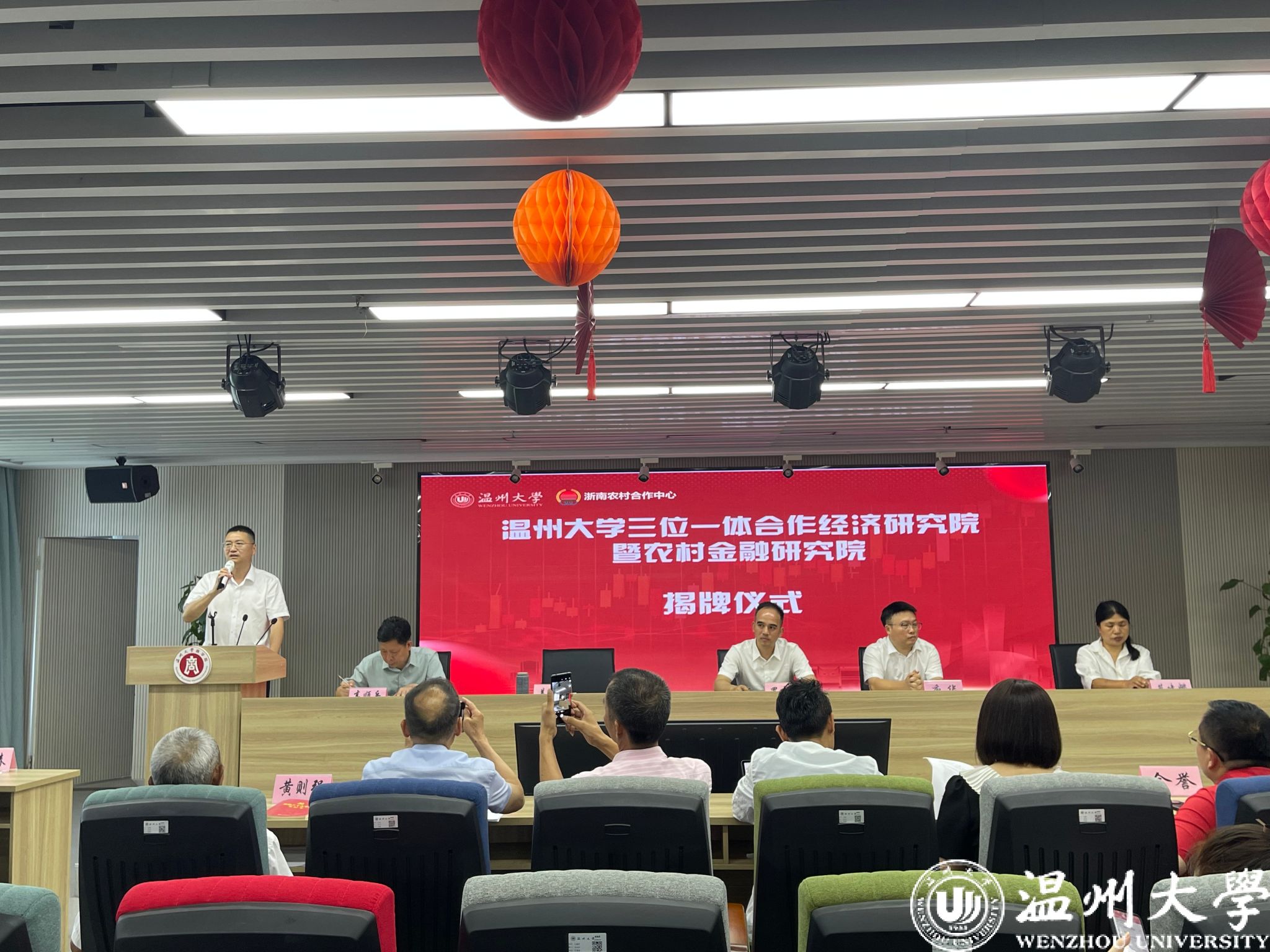 A226会议室内隆重举行。仪式由学院党委书记唐华主持,多位校内外领导、专家学者及合作单位代表齐聚一堂,共同见证这一服务地方三农发展的重要学术平台扬帆起航。据悉,本次三位一体合作经济研究院(农村金融研究院)的成立,也是全国党建工作样板党支部魔镜号
