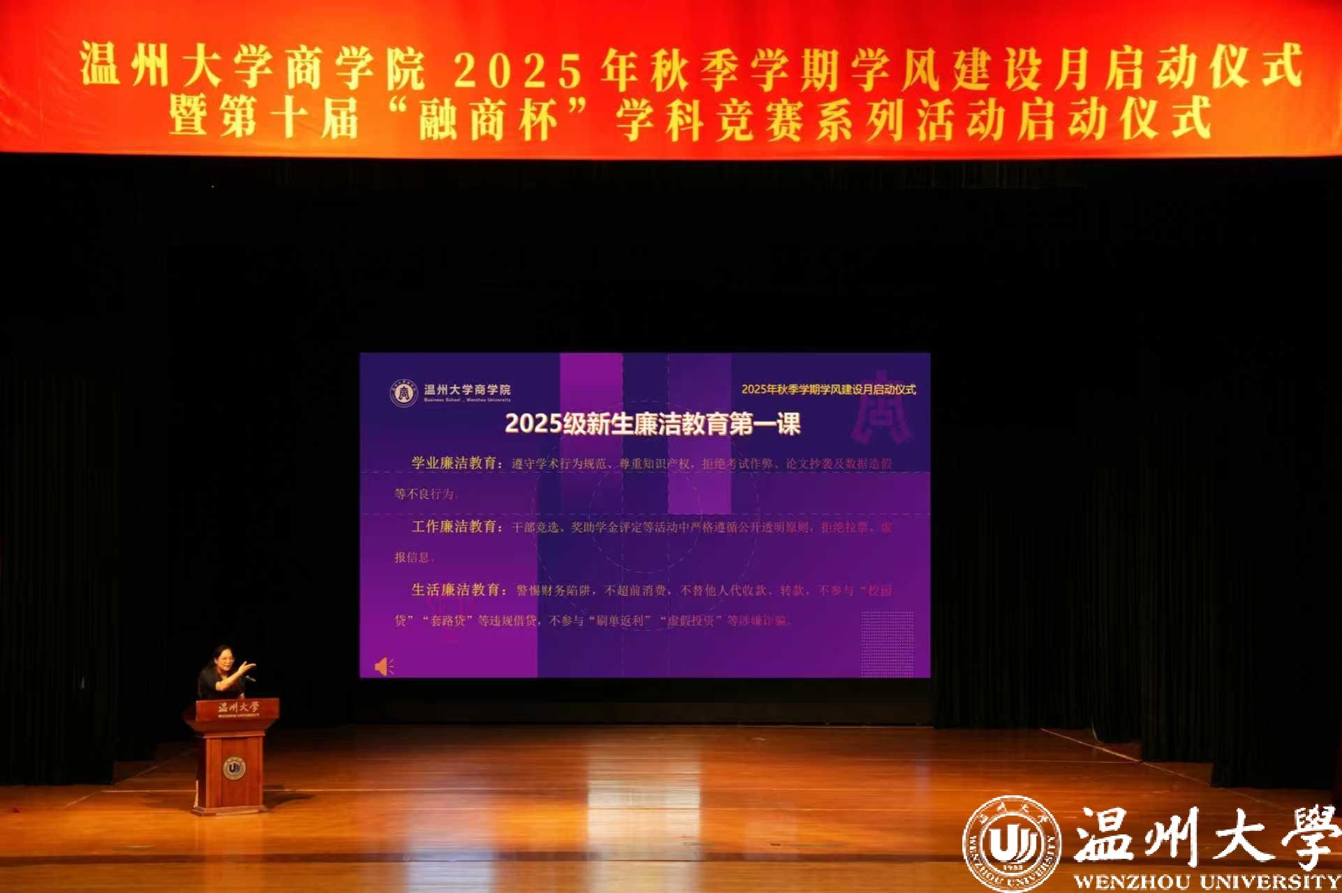 于 2025 年 9 月 29 日 18:30 在育英大礼堂隆重举办 2025 年秋季学期学风建设月暨第十届 “融商杯” 学科竞赛启动仪式。院领导、系主任、辅导员、竞赛优秀指导老师、优秀竞赛团队代表及各年级学生代表齐聚一堂,共同开启魔镜号