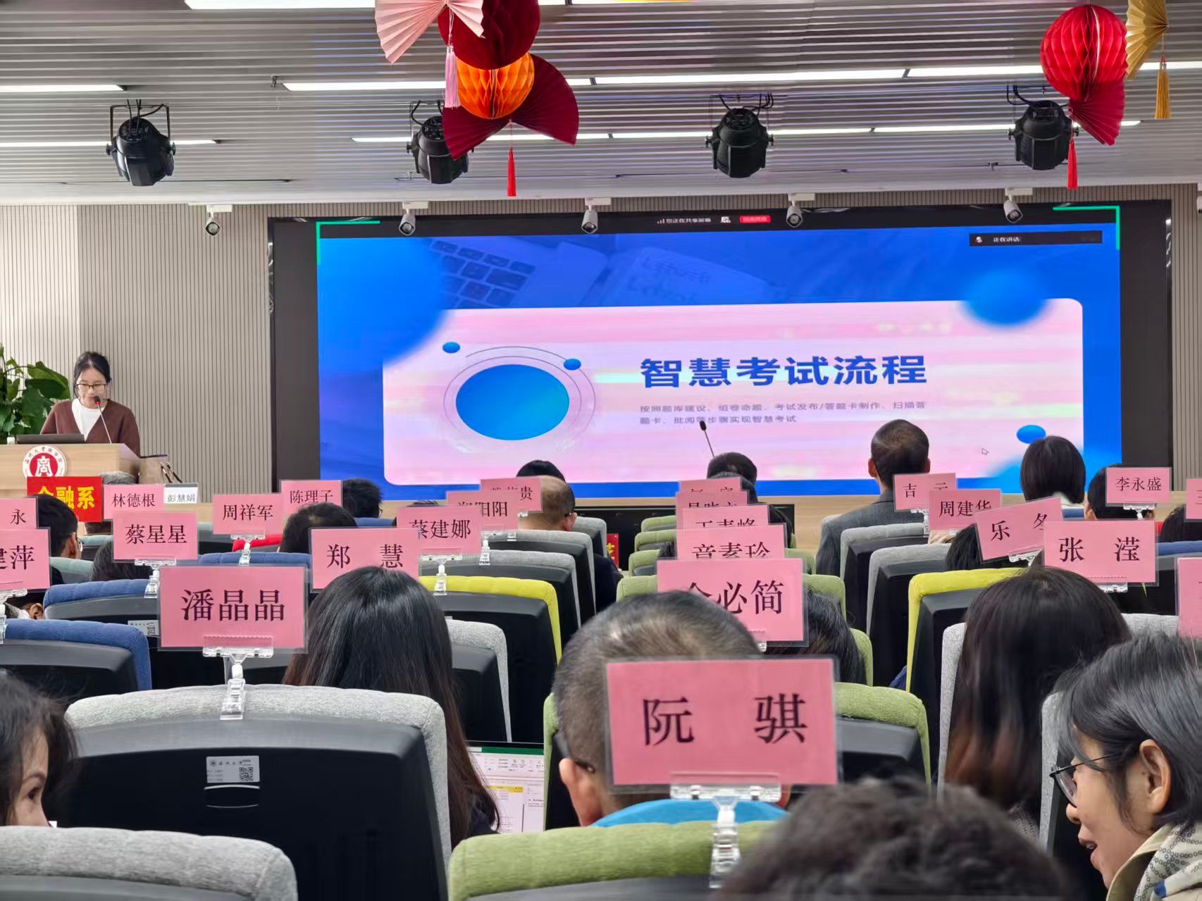 同时,为推进教学数字化与规范化建设,学院专门安排“超星智慧考试系统”实操培训。超星集团培训师彭慧娟围绕题库建设、智能组卷、线上监考、答题卡扫描及批量阅卷等核心功能进行系统讲解与演示,重点展示系统在客观题自动批改、主观题线上评阅、成绩一键生成与分析等方面的技术优势。她指出,该系统能有效提升阅卷效率,杜绝核分差错,实现考试全过程信息化管理,为规范教学材料、提升出卷阅卷质量提供有力技术支撑。
