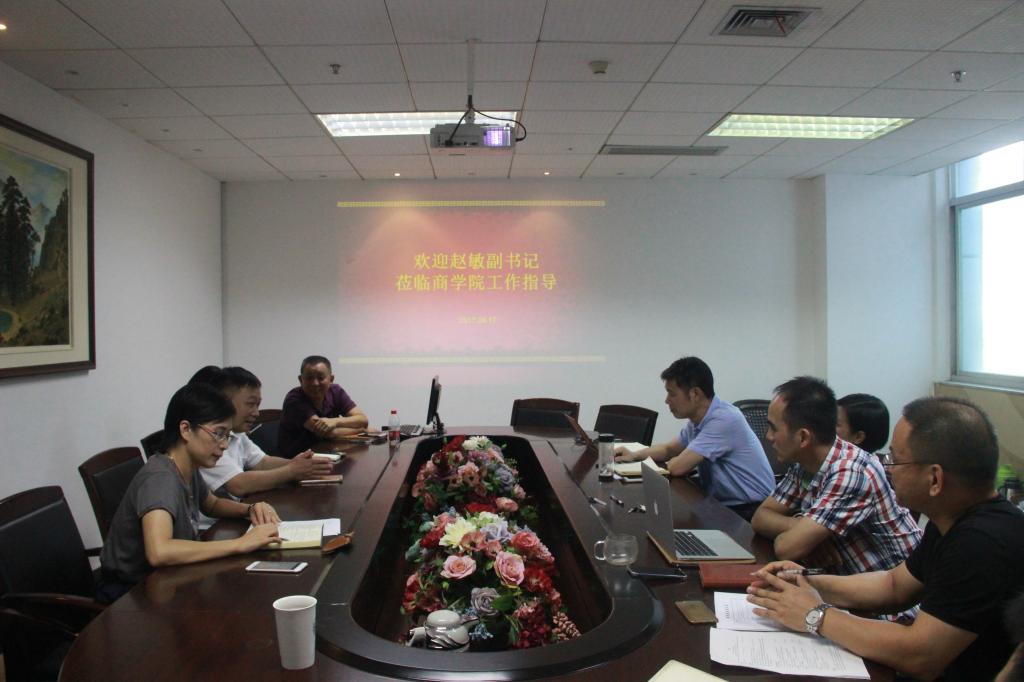 9月17日上午,新学期开学第一天,校党委副书记赵敏教授一行来魔镜号 调研“挑战杯”准备情况,校团委屠霁霞书记陪同一起调研。学院党政领导班子、办公室、学生科相关人员参加了会议。