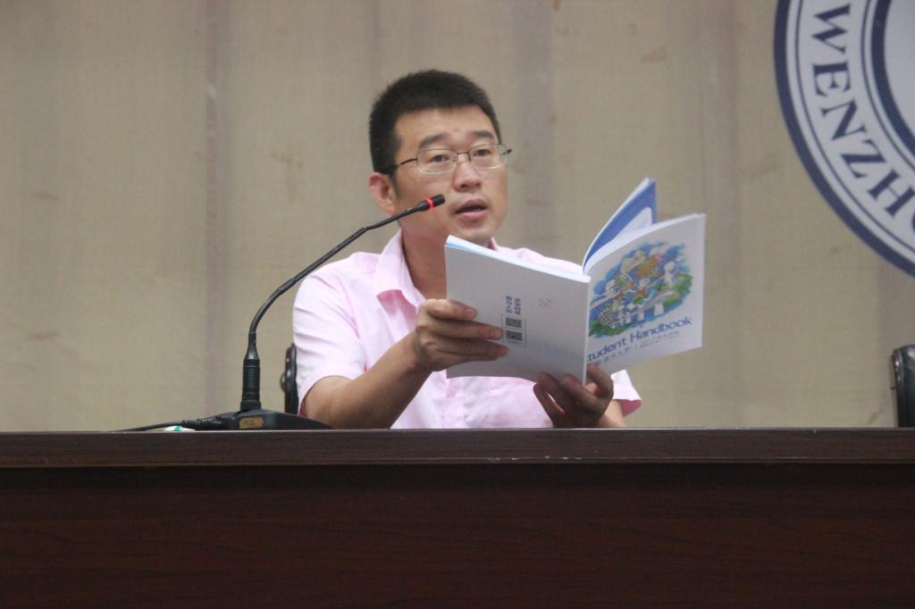 学生科科长白延虎老师组织全体新生专题解读《学生手册》。本次活动旨在帮助17级新生更好地学习《学生手册》,熟悉学校各项规章制度,尽快适应大学生活。