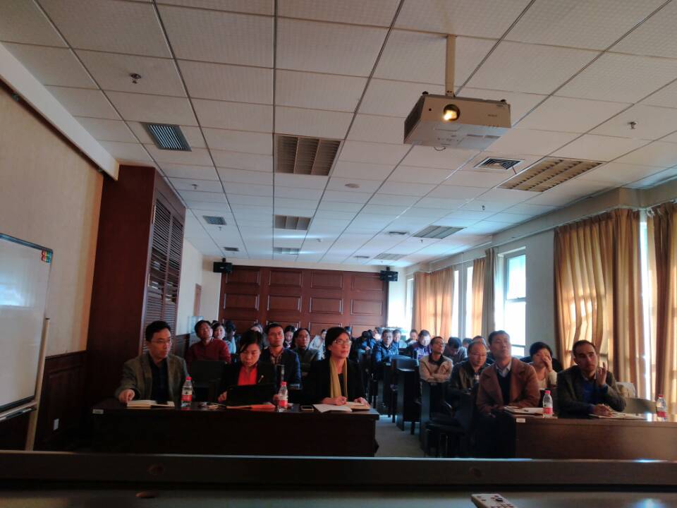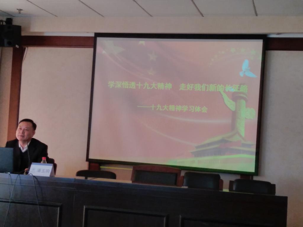 作十九大精神辅导报告,潘部长做了《学深悟透十九大精神,走好我们新的长征路》的专题报告。会议由学院党总支书记郑彩莲主持,学院全体教工聆听了报告。