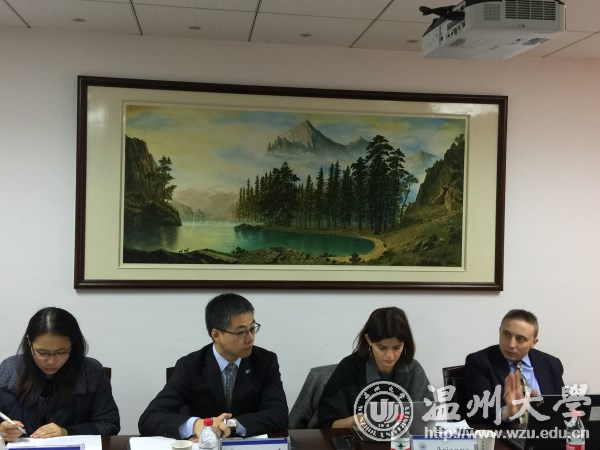 院长胡振华,党总支书记郑彩莲,副院长罗建利,国际部主任兼院长助理王洪斌博士,外事处副处长熊勇,教务处副处长胡瑜,以及意大利卡托利卡大学国际教育部副主任Gianluca Samsa先生、中国办公室主任Arianna女生,澳大利亚教育管理集团全球事务与合作关系部部长段玉才先生、学生服务部欧洲区专员虞小妹女士,以及其他相关科室领导老师参加了此次商谈会议。