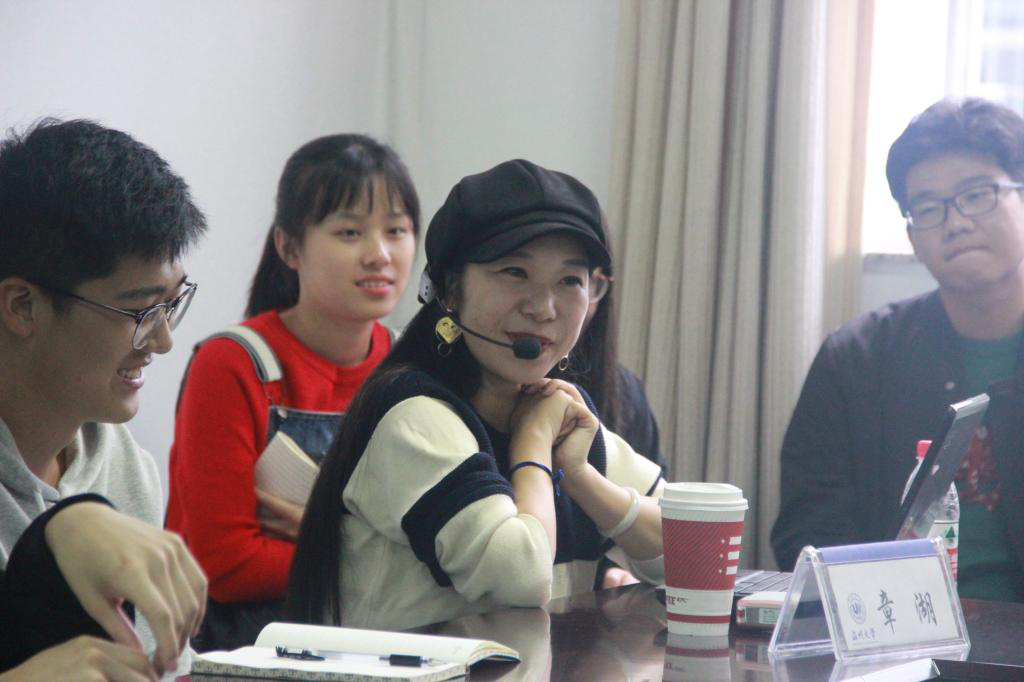 师生对章瑚女士在未来记者工作中的美好祝愿。培训中,章瑚女士分享了她在大学中的求职经历,她提出大学并不是只有学习而已。她鼓励在座同学积极参与大学活动,通过加入部门锻炼自己,通过暑期实践丰富阅历,强化技能。