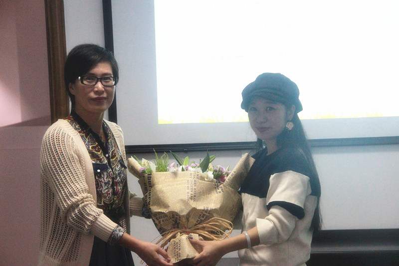 师生为章瑚女士献花,并表达了魔镜号