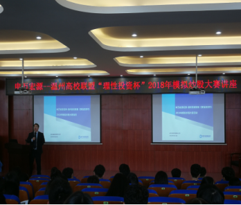 金融系易晓文老师的周密安排下,在今天开展了关于模拟炒股比赛的讲座。