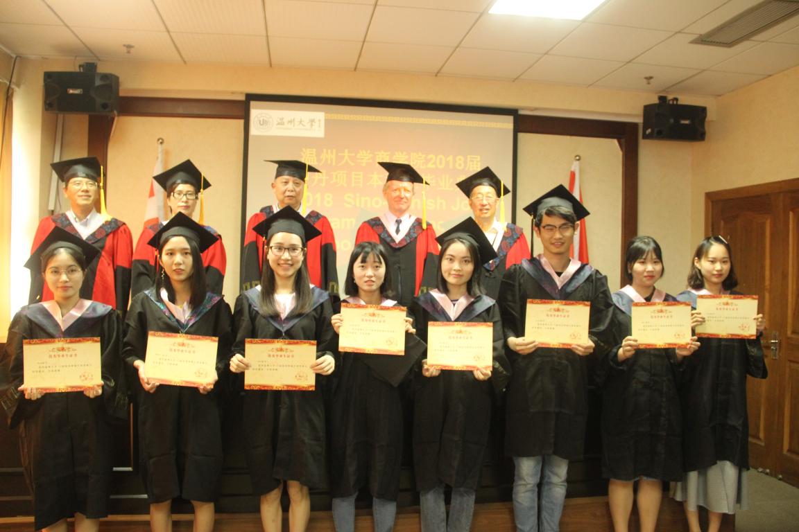 致辞,他对中丹合作项目2018届毕业生圆满完成学业表示衷心的祝福。在2018届毕业生即将挥别美丽的温大、步入广阔的社会天地的时候,他希望同学们在即将开始的新的人生旅程中能坚守初心,始终不变,坚持付出,不懈奋斗,始终牢记在追求理想时的执着,做到用勤奋和智慧铺就未来的人生之路,在奉献中实现自己的人生价值。