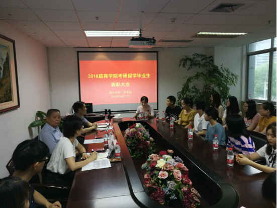 院长胡振华、党总支书记郑彩莲、副书记刘开练以及2018届考研留学的优秀毕业生参加了此次会议。会议由刘开练书记主持。