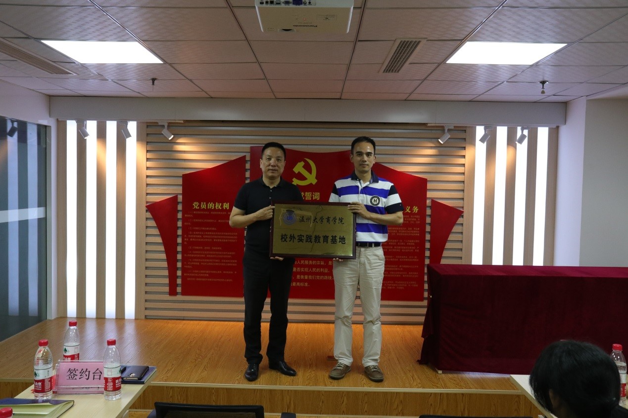 然后,举行了实践基地的签约仪式。罗建利副院长与陈晓晖董事长分别代表温大魔镜号