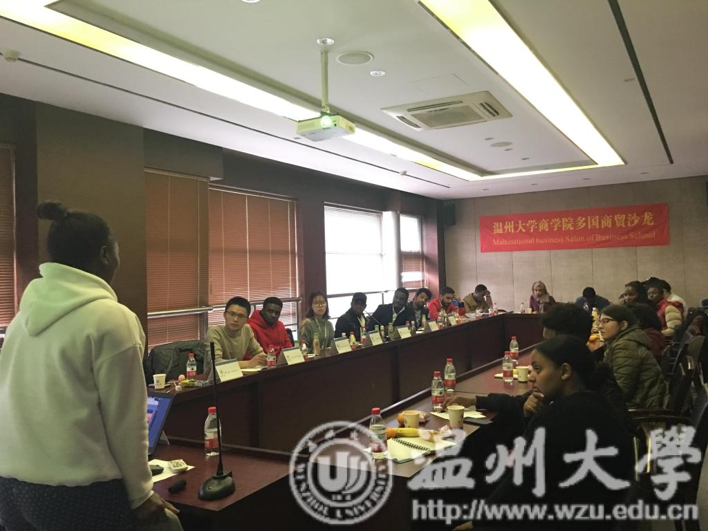 、温州医科大学以及温州肯恩大学三个院校的众多学生。在这个明媚的下午,三校学生代表齐聚一堂,来自新加坡,埃塞俄比亚,坦桑尼亚等多个国家的留学生们毫不吝啬地与大家一同分享自己国家的商务贸易现状,一起剖析现存的问题,探讨可能的解决方案,以及探索未来的发展方向。更有学生代表为大家带来了关于一带一路的商贸分享。