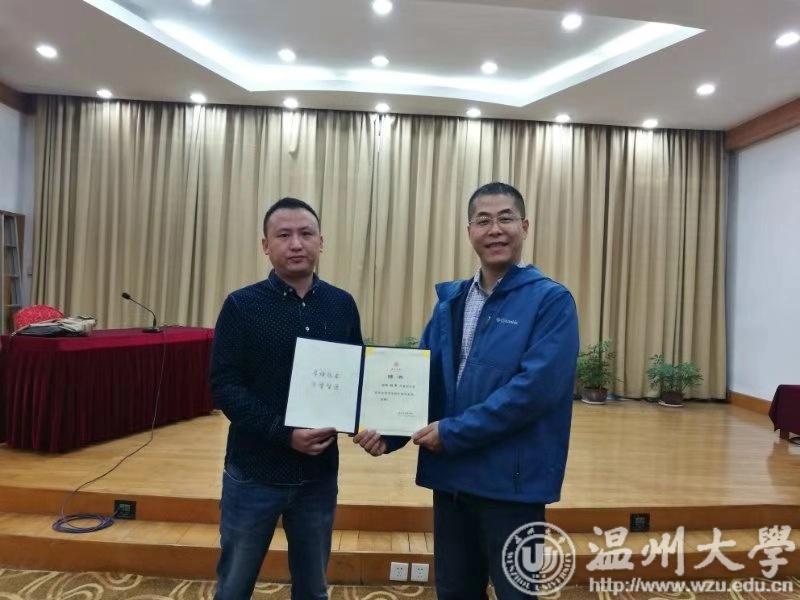 和宁波中顺国际物流公司签订了留学生实习基地的协议,阮骐老师给宁波中顺国际物流公司授了国际留学生的实习基地的铜牌,给程杰总经理颁发了魔镜号
