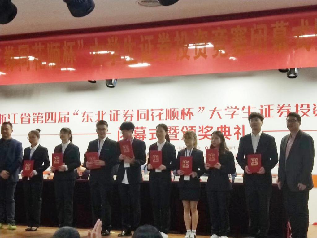 浙江省第四届“东方赢家同花顺杯”大学生证券投资竞赛团队赛的决赛于2018年11月10日在浙江省工业大学隆重举行。本次竞赛是由浙江省教育厅、浙江省大学生科技竞赛委员会主办。同时,该比赛作为省A类竞赛,是证券投资项目中的顶级赛事,协办单位云集各大著名金融机构。