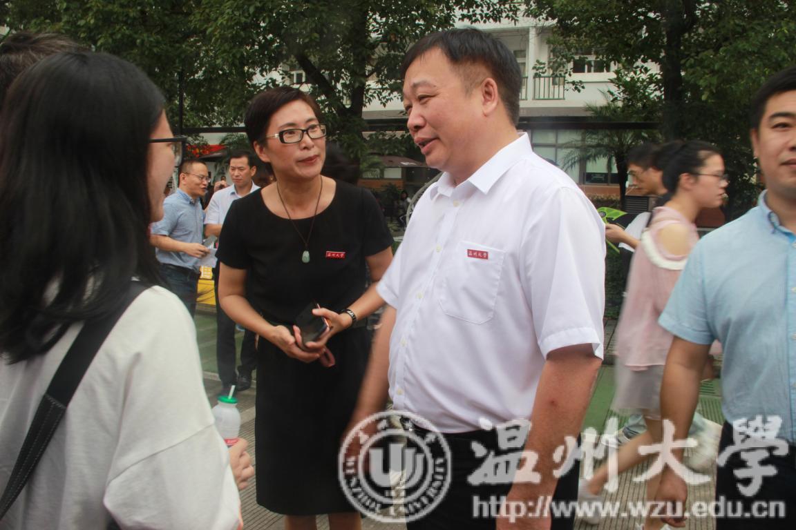 学校和学院领导们也亲切地走进迎新现场,看望慰问新同学们。校长赵敏来到魔镜号