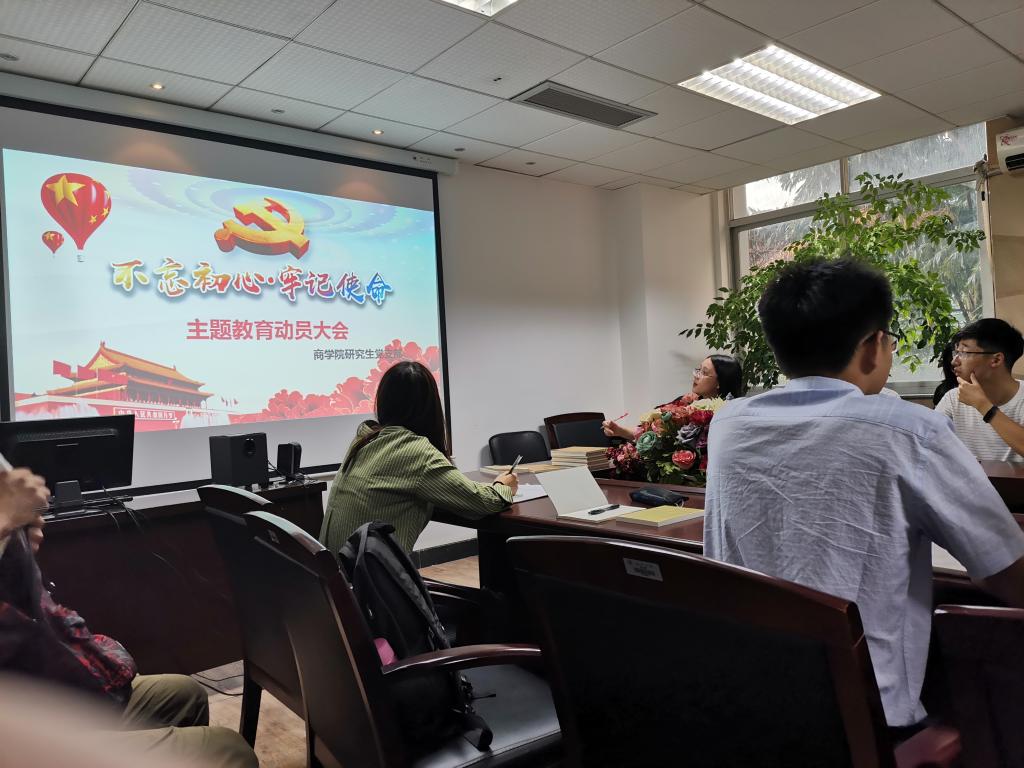“不忘初心、牢记使命”主题教育的相关部署,要求全体党员响应号召,率先垂范,自觉投身到主题教育的各项要求中来。她还就本学期工作计划做了重点部署,并与全体研究生党员探讨如何建成有研究生特色的党支部,真正做到不忘初心,助力学校早日实现“三大目标”“七大战略”。