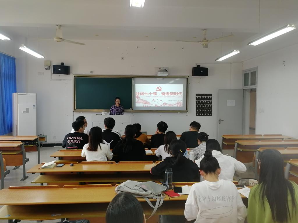 学生第一党支部于北2-407开展了“壮阔七十载,奋进新时代”主题学习教育,本次活动由宣传委员吴淑婷组织,带领大家回顾了习近平主席在70周年阅兵仪式上的讲话,并就重要观点发表了自己的见解。