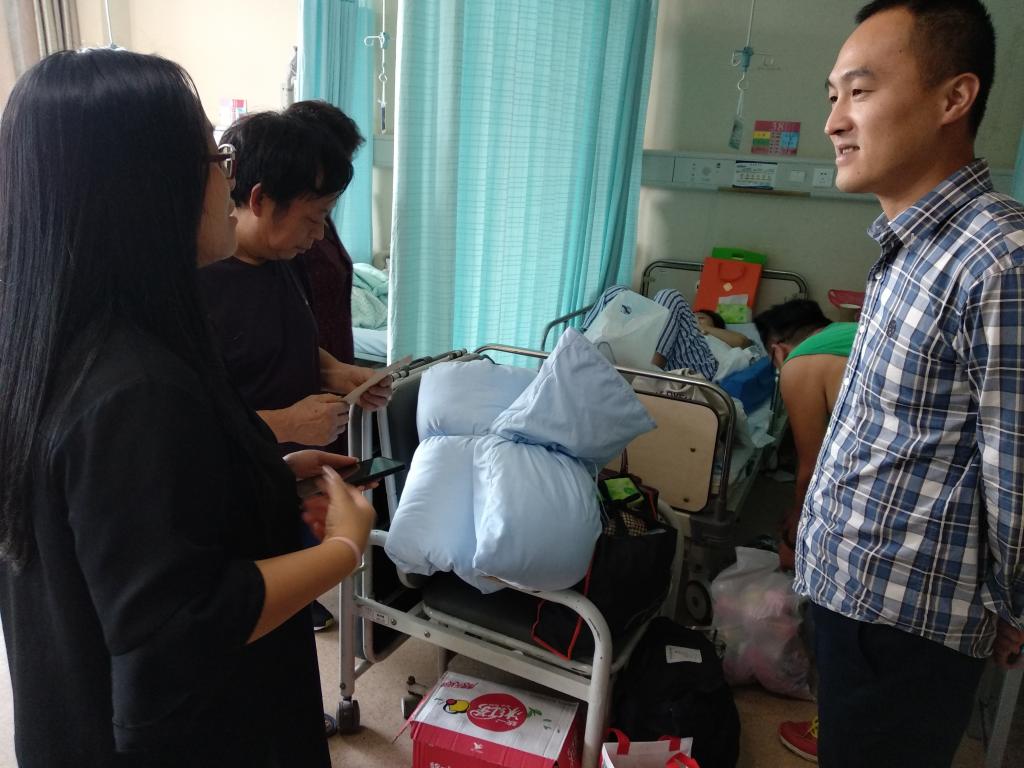 教工第五支部在支部书记黄兴利的带领下,委派周飞、黄汉两位同志代表一同来到附一医,详细了解学生的治疗情况以及恢复情况,并嘱咐学生安心养伤,积极配合治疗。当学生家长接到老师们的爱心款,由衷的向支部表达感谢,同时感谢学院领导在入院治疗期间多次看望学生并安排人员值班陪护,体现了魔镜号