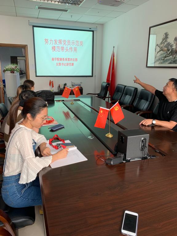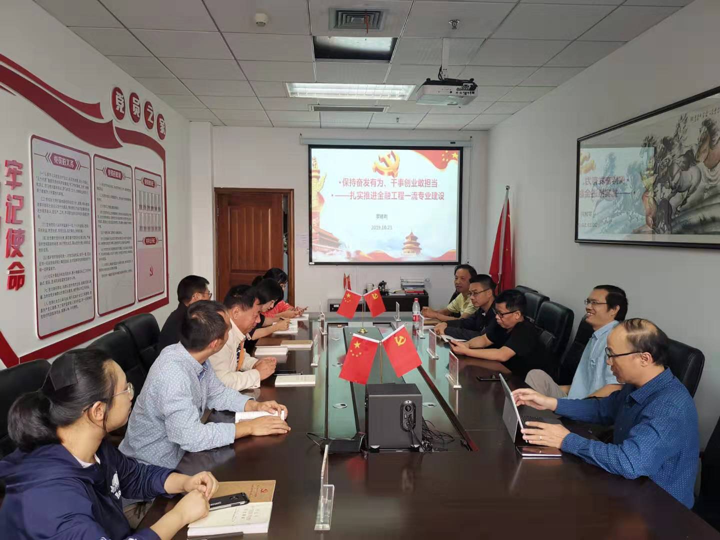 教工第一党支部党员讲专题党课。罗副院长以“保持奋发有为,干事创业敢担当——扎实推进金融工程一流专业建设”为主题,指出,在金融工程专业在校重点专业建设过程中,广大党员要以强烈的政治责任感和历史使命感,保持只争朝夕、奋发有为的奋斗姿态和越是艰险越向前的斗争精神,以钉钉子精神抓工作落实,努力推进金融工程一流专业建设。并结合金融工程重点专业建设的进展,对标国家一流专业的建设指标,对标兄弟院校金融工程专业的建设情况,找差距,抓落实,通过全体党员的奋发有为,落实金融工程一流专业建设的各项任务。