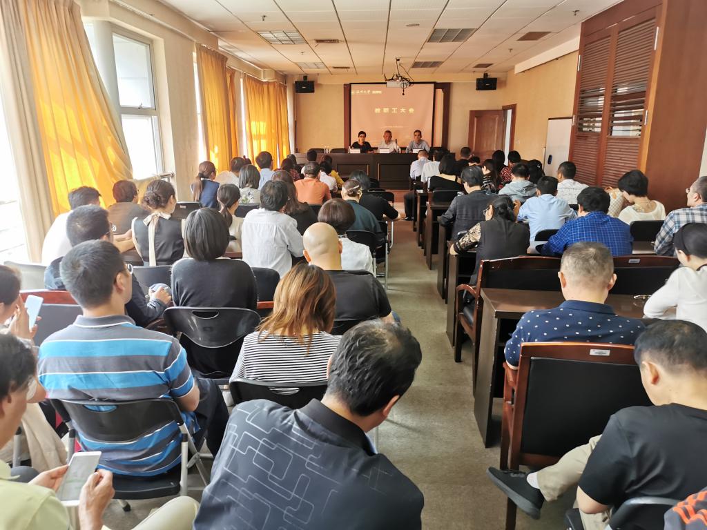 党委在A222会议室召开新一任中层干部集体谈话暨中心理论组扩大学习会,学院党政班子、党委委员、纪委委员、教工支部书记、系(部)主任出席会议。