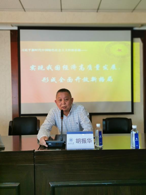 深入开展《实现我国经济高质量发展,形成全面开放新格局》主题教育党课。本次党课由学院党委书记郑彩莲主持,学院院长胡振华主讲,全院教职工出席。