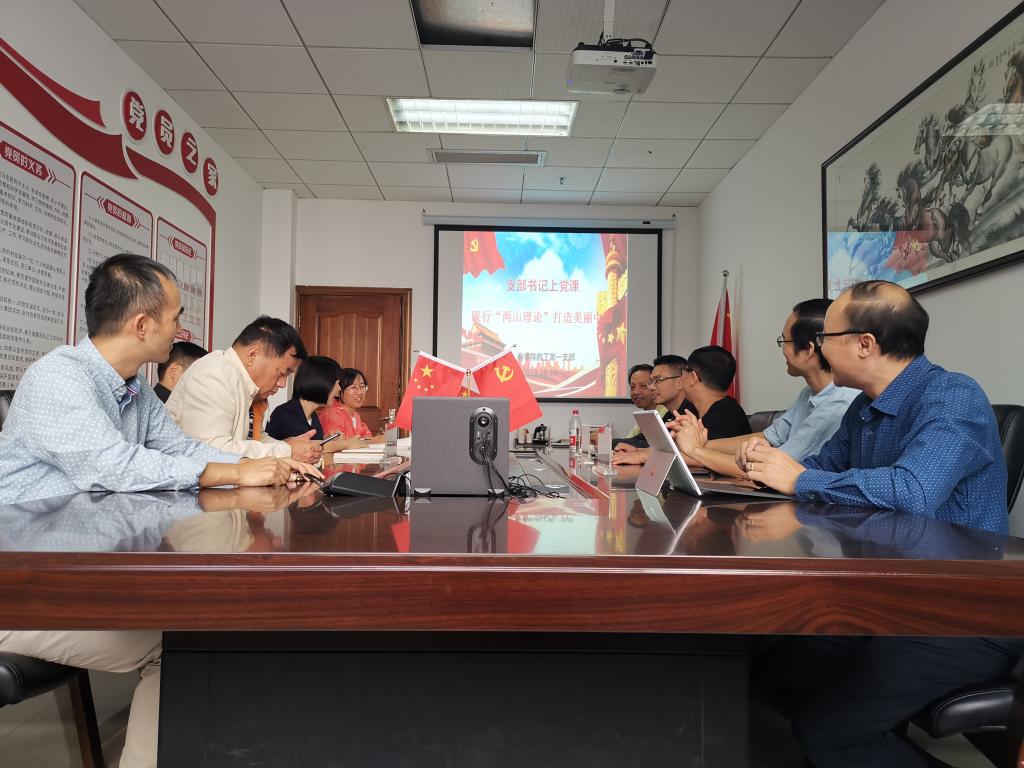 副院长罗建利和教工第一支部书记周建华在A223党员之家为支部党员同志上党课,内容分别为《保持奋发有为、干事创业敢担当——扎实推进金融工程一流专业建设》和《践行“两山”理论,打造美丽中国》。