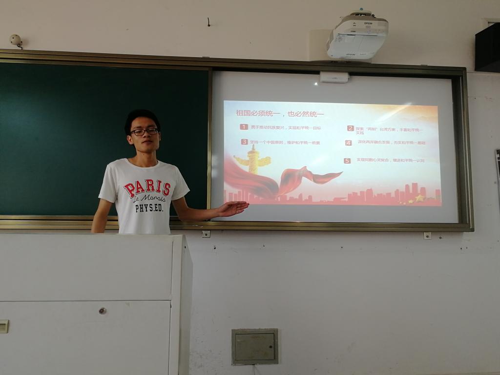 以习近平总书记强调的“祖国必须统一,也必然统一”为会议核心贯穿始终,大家进一步坚定了祖国统一的信心。实现祖国完全统一,是全体中华儿女的共同心愿,是中华民族根本利益所在,这是任何人任何势力都无法阻挡的。两岸同胞同根同源、血浓于水,作为大学生党员更应坚定一个中国原则不动摇。通过这一场触及灵魂的“团结之旅”,全体党员一致表示将从中吸取力量,在习近平同志的坚强领导下,牢牢把握两岸关系主导权控制权,引领两岸关系发展方向,不断取的新进展,开创新局面。