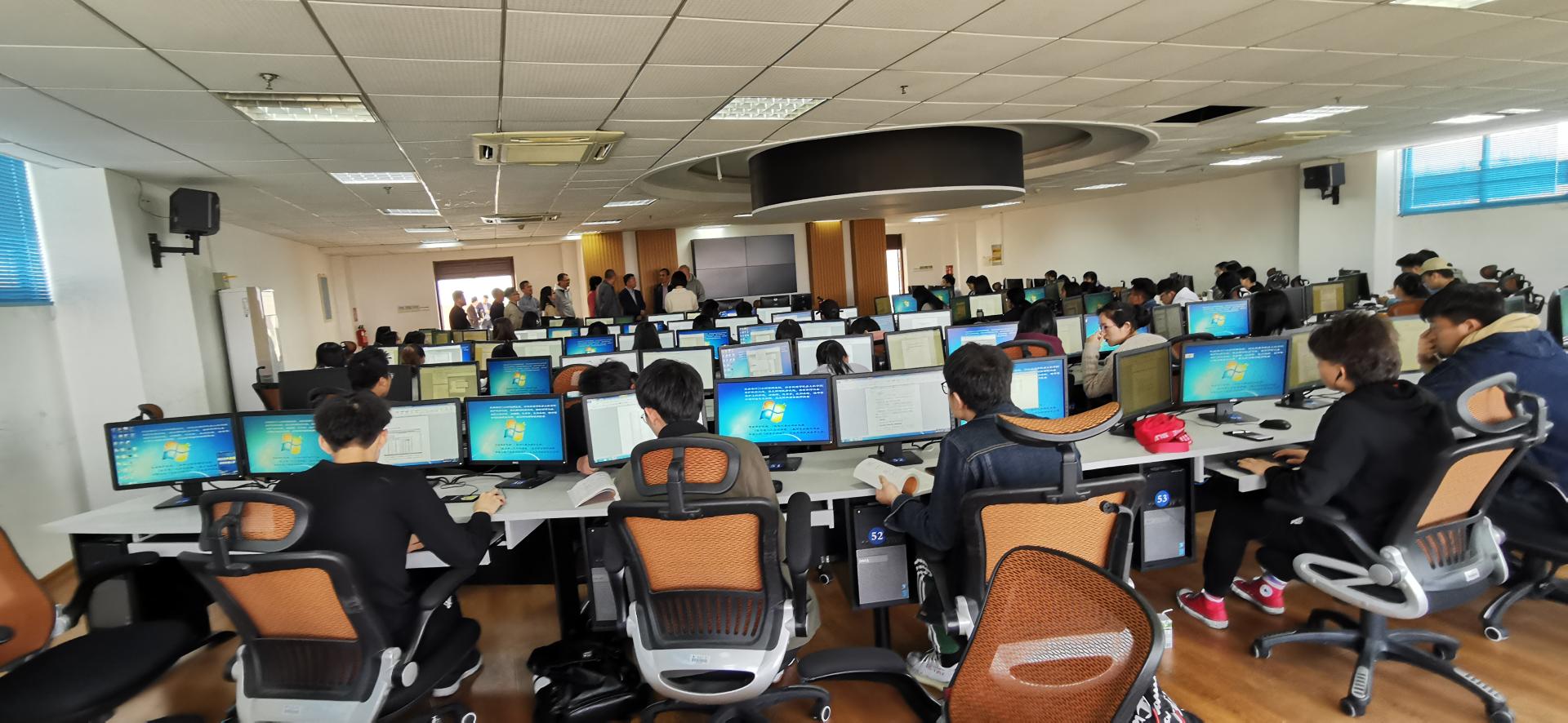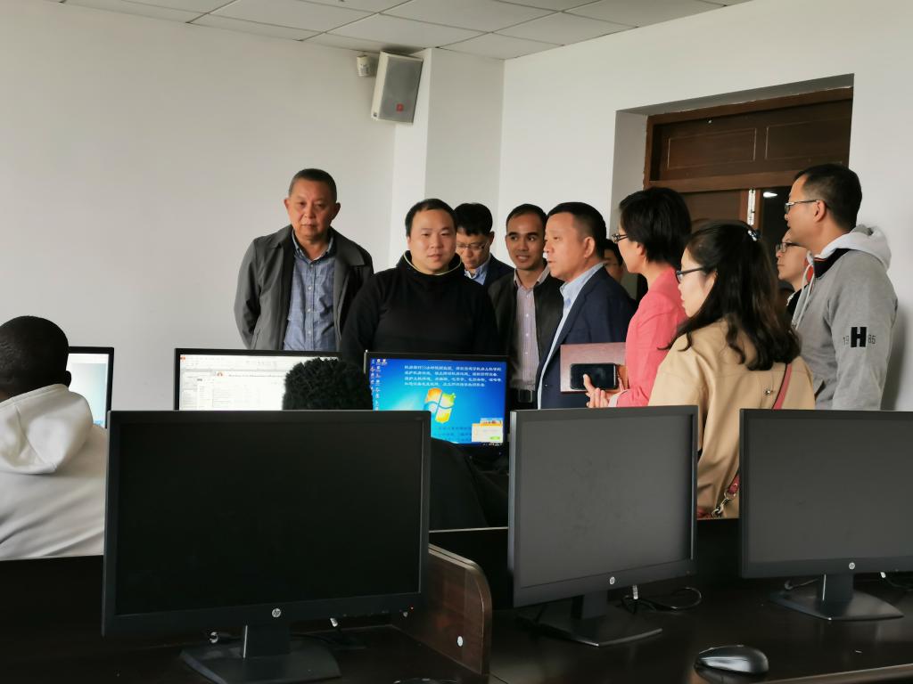 海归博士徐正老师正在金融工程虚拟仿真实验室给留学生上课。谢树华书记驻足与徐正老师亲切交流,了解魔镜号