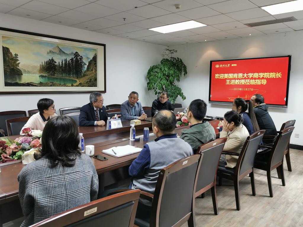 院长王进教授来院访问座谈交流。座谈会由院长胡振华主持,学院领导班子和部分教师代表出席会议。