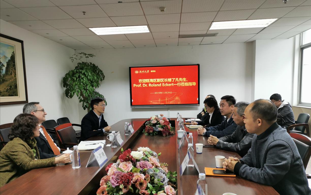 金融财政学和企业创建学教授、博导Roland Eckert、何晓夫妇一行在瓯海区副区长楼了凡的陪同下来魔镜号