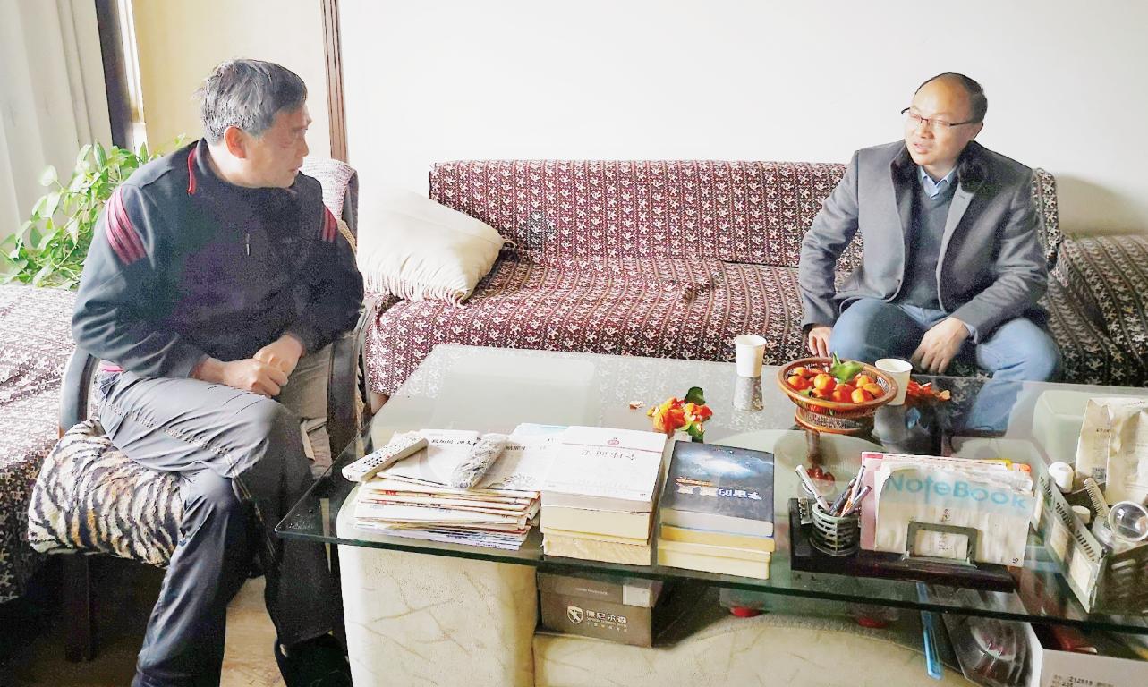 胡振华院长与院办主任张素琴、辅导员黄汉一行看望慰问了张凝恩、马汉臣和江华老师。