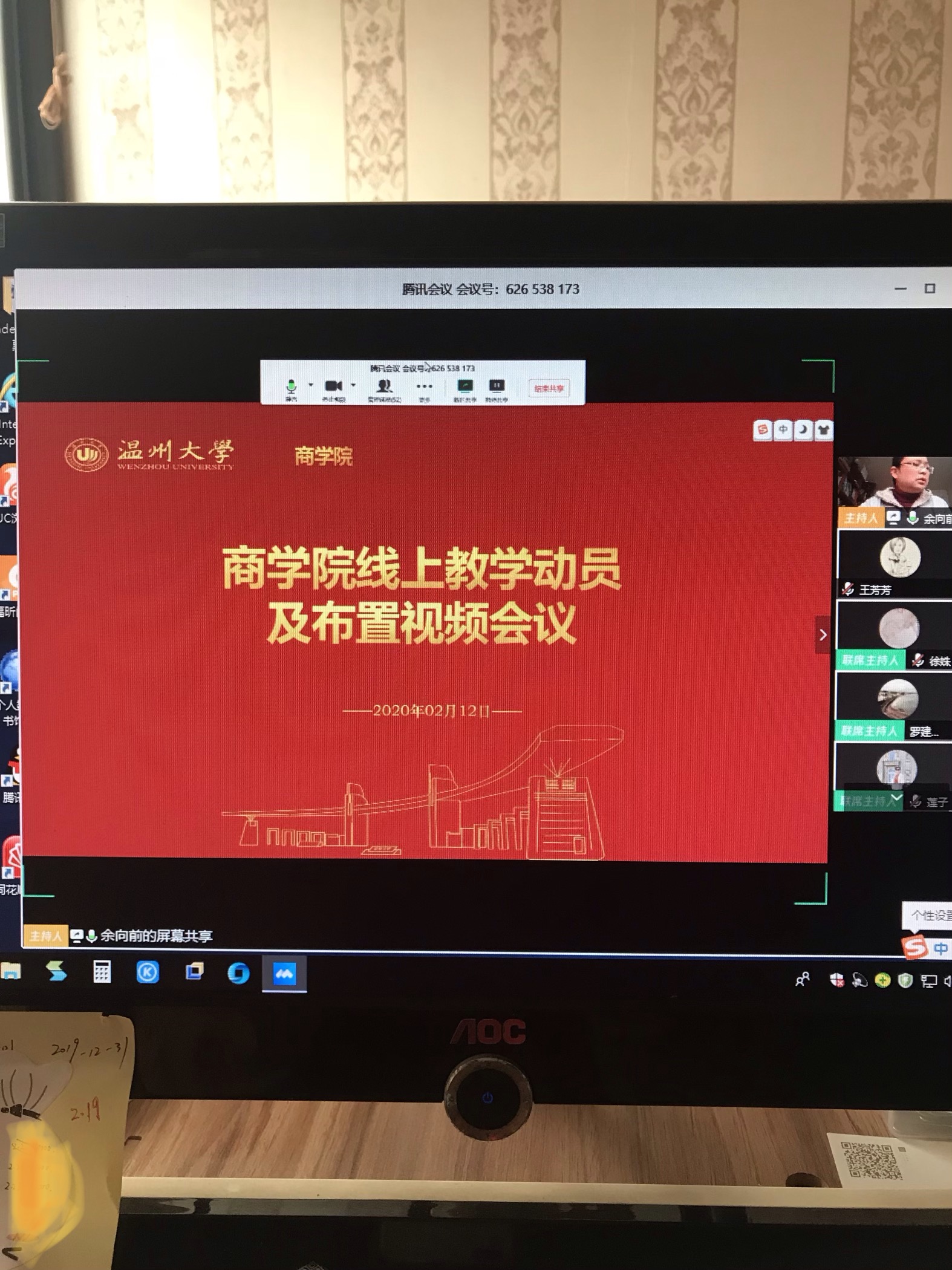 利用“腾讯会议”召开线上教学工作会议,全体教工参加本次会议。
