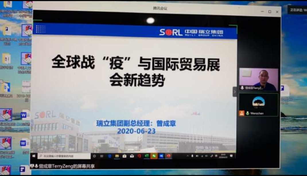 2020年6月23号,以全球战"疫"与国际贸易展会新趋势为主题的线上讲座圆满完成。因为疫情原因,本次讲座采取线上开展的方式,主讲人是瑞立集团分管国际市场的曾成章副总经理。