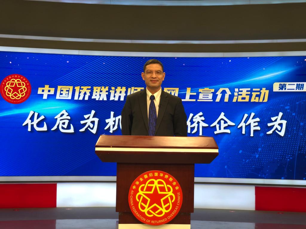演讲中,张一力教授围绕侨企侨商复工复产的典型事迹和迎难而上的担当作为、拼搏精神以及积极贡献,引导侨企侨商正确分析、辨证看待疫情形势下国内外经济走向,做到既有理论剖析又给出应对实招,力求给侨胞以方向指引和实践启迪。