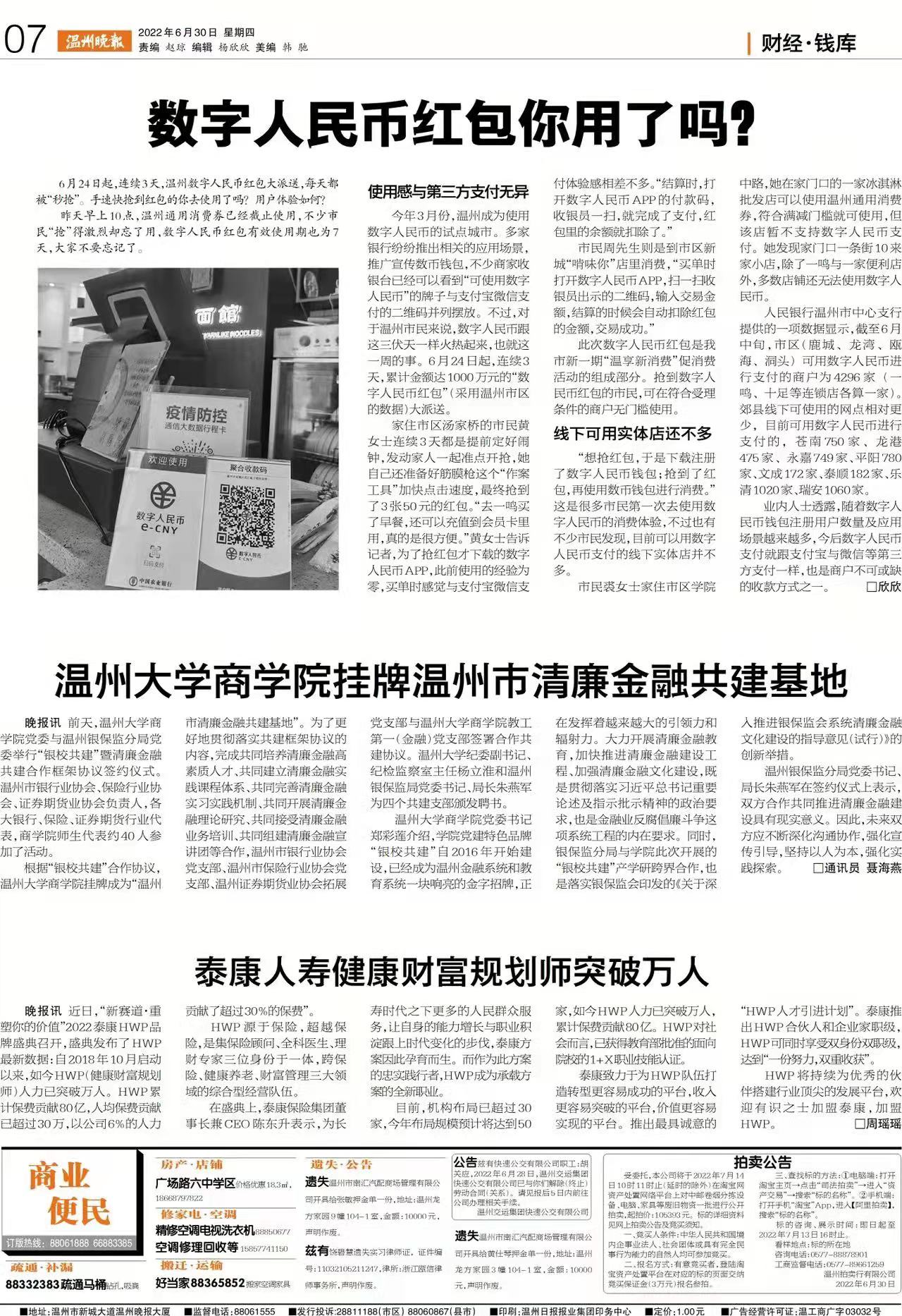 党委与温州银保监分局党委举行“银校共建”暨清廉金融共建合作框架协议签约仪式。温州市银行业协会、保险行业协会、证券期货业协会负责人,各大银行、保险、证券期货行业代表,魔镜号
