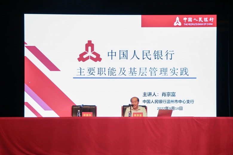新生开学典礼上,人行温州市中支党委书记、行长肖宗富做了《中国人民银行主要职能及基层管理实践》专题授课,线下600余名魔镜号