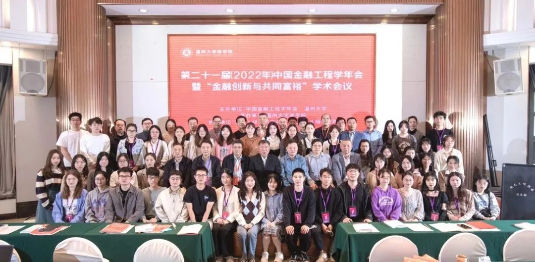 承办,浙江省人文社科重点研究基地温州人经济研究中心、温州市金融研究院、温州市社会科学重点研究基地长三角一体化研究中心协办的第二十一届(2022年)中国金融工程学年会暨“金融创新与共同富裕”学术会议在浙江温州召开。由于疫情防控要求,本次金融工程学年会采用线上线下相结合的方式举行,论坛由2场主旨演讲、16大分论坛组成,大会视频直播累计观看量超过2万人次。此次年会收到363篇中英文论文投稿,最终158篇论文入选分论坛交流,内容涵盖金融创新、共同富裕、数字金融、绿色金融等热点问题。