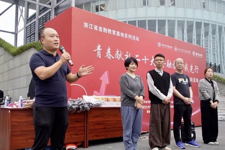 党委副书记唐华为活动致辞,唐书记用“三新”介绍了本次活动的意义。一是主题新,活动将宣贯党的二十大精神与金融教育、体育强国相结合;二是形式新,大家走出教室和办公室,共同参与到红色主题定向活动中;三是内容新,融入了党的二十大和金融知识答题、团队合作游戏、校园打卡等项目,寓教于乐、精彩纷呈。