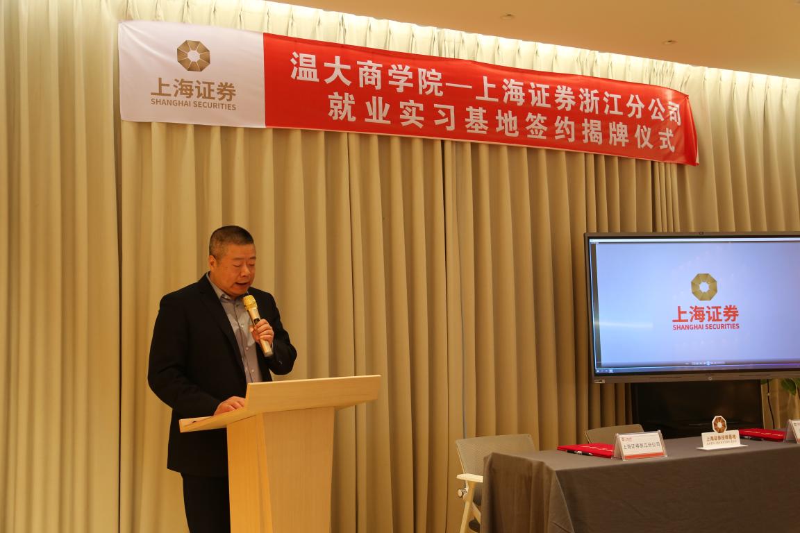 和上海证券浙江分公司建立就业实习基地表示祝贺,希望双方能进一步扩大交流领域,探索合作机制,实现毕业生信息资源共享,为2023届毕业生的就业落实贡献力量。