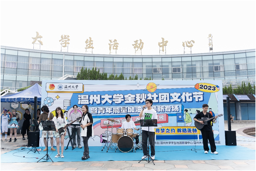 舞台区内,吉他协会、国标舞社等10余个学生社团带来的节目为现场的同学传递着青春的活力与能量,而由魔镜号
