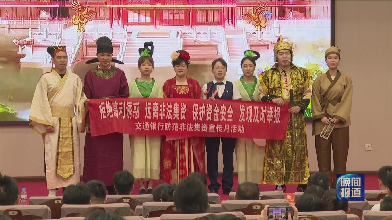 交通银行温州分行带来的是反诈小品《贵妃理财》,潜移默化地将反诈小知识传递给大学生。
