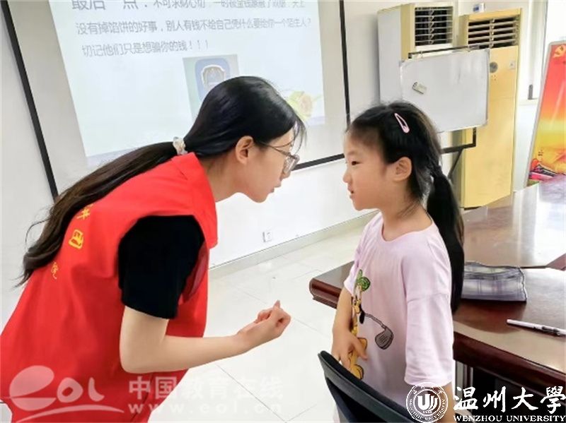 “乡与商随”暑期社会实践队在茶山村党群服务中心为小朋友们上了一堂生动有趣的反诈骗小课堂。