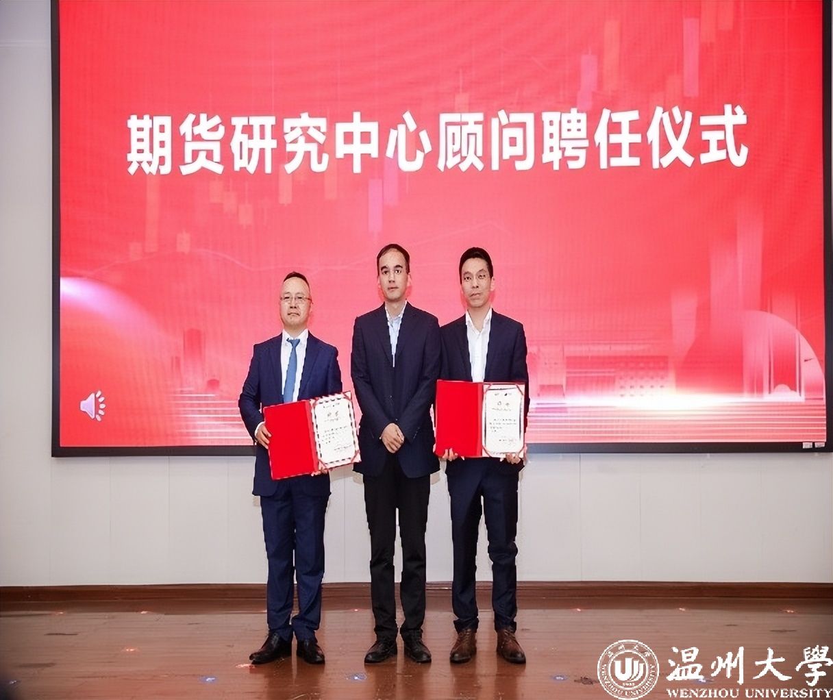 校外实践教育基地”,双方党支部签署党建共建协议,进一步强化组织协同。研究中心还聘请全球衍生品交易大赛冠军谭伟鸿、物产中大期货研究院院长吕洁等专家担任顾问,为科研与实践提供智力支持。
