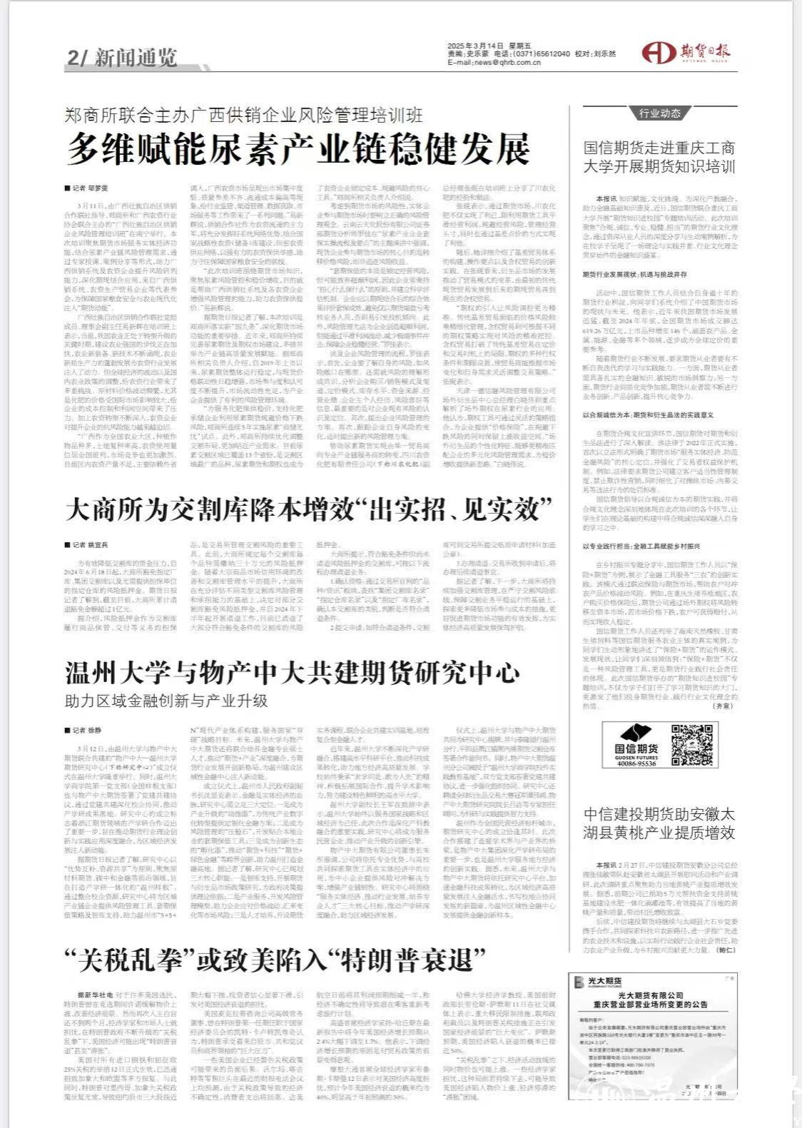 与物产中大期货还将联合培养金融专业硕士人才,推动“期货+产业”深度融合,为期货行业的发展开创新格局,为温州建设区域性金融中心注入新动能。