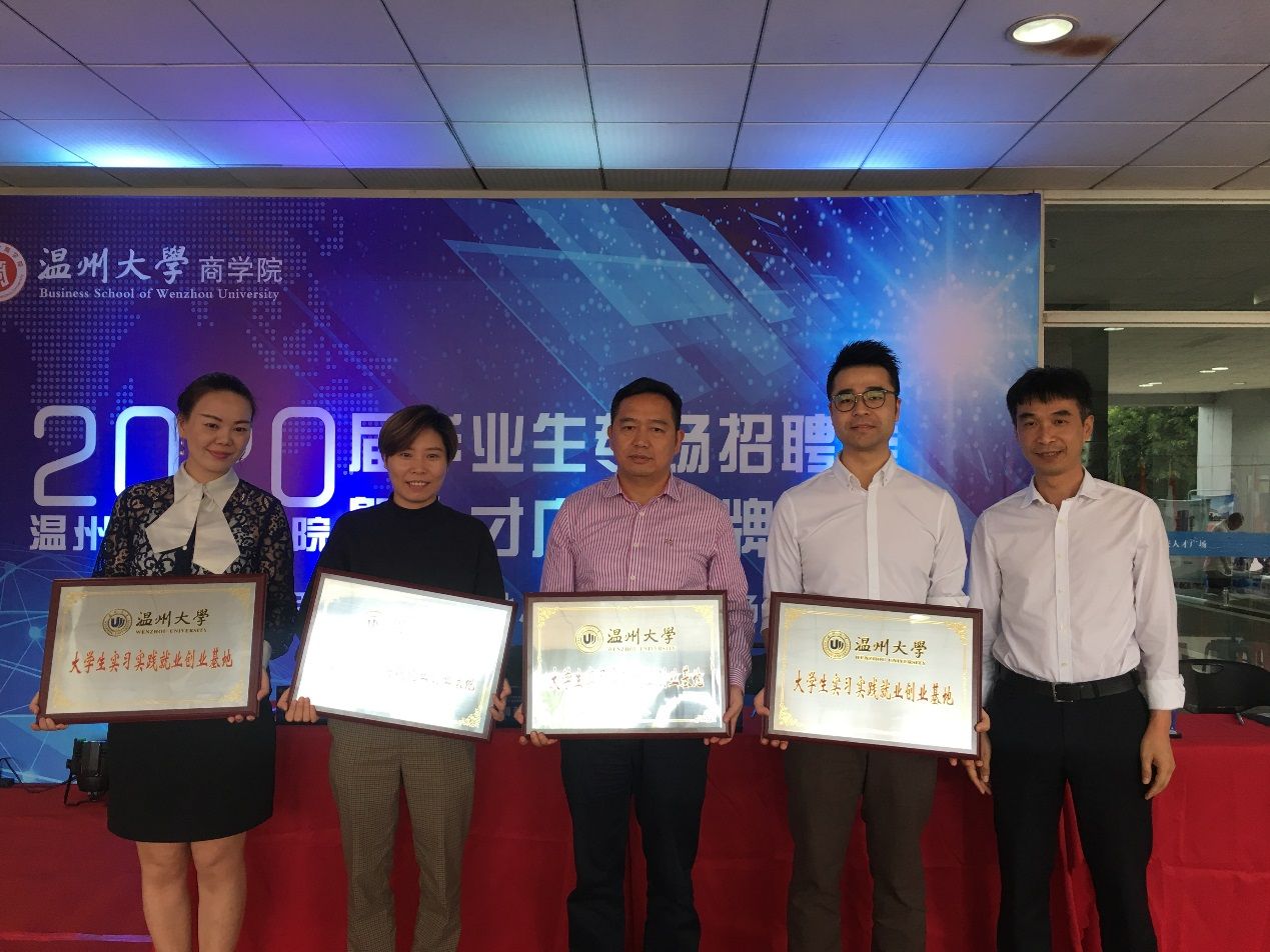 招就处黄文浩处长授予招商银行温州分行“大学生实习实践就业创业基地”铭牌,双方将共享资源,共建平台,促进产学共赢。