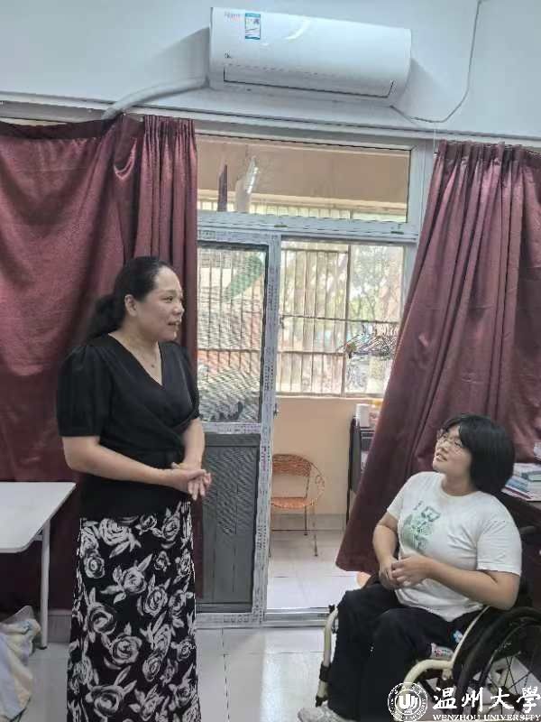 学生公寓B区看望并慰问不畏残疾坚持学习的蔡雨含同学,送去新学期的温暖和慰问。