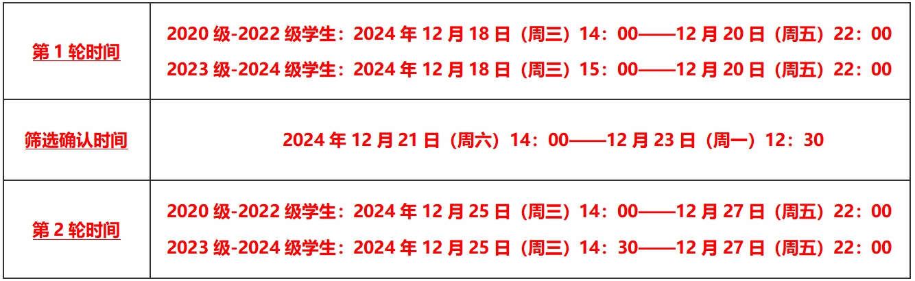 3.因复学等特殊情况而不能参加第1、2轮选课的学生可参加下学期初的第3轮改补退,补选有容量的课程