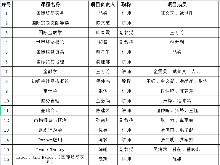 经学院专家评审,同意《国际贸易实务》等16门课程思政示范课程获得院级项目立项,现将评审结果予以公示,公示时间从2021年4月15—4月17日,如对立项名单有异议,请与教学科徐老师联系,联系电话:86680957。