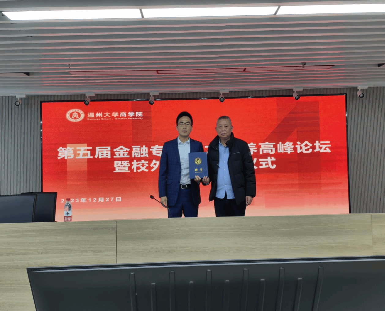 院长胡振华分别为北京首都开发股份有限公司白杨先生、温大上海校友会陈康汉先生、中国银行温州市分行刘晓波先生、温州市社科联倪考梦先生、长江证券王寒冰先生、中国光大银行温州分行徐迪先生、、平阳农商银行余丙豪先生、温州市经济体制委员会马津龙先生、源大集团华芝女士、温州给力税务服务中心何建龙先生、浙江浩逸文化发展股份有限公司吴小平先生、浙江可行财务管理咨询服务有限公司叶豪华先生、浙江东方纵横认证有限公司蒋利丹女士、温州市供应链学会黄小明先生、温州市商务局潘平平先生、温州市社科联卢达先生、浙江怡联网络科技股份有限公司胡亮先生等几位校外硕导颁发聘书。