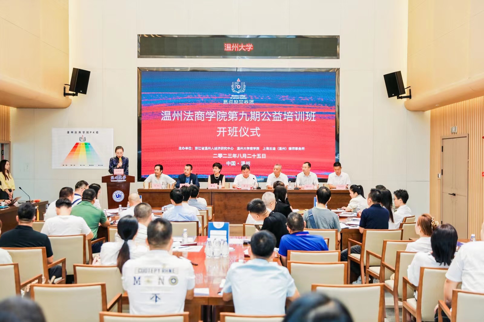 校友理事会理事长、浙江正班商业管理有限公司董事长贾海亮等领导出席开班仪式。仪式由上海兰迪(温州)律师事务所执行主任、温州法魔镜号